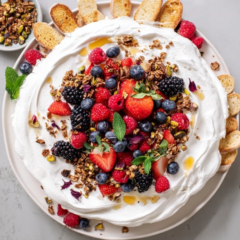 - Toppings: 150 g (1 cup) mixed fresh berries strawberries blueberries raspberries blackberries 2 tbsp chopped toasted pistachios or almonds 1 tbsp dried edible rose petals (optional) 2 tbsp mini chocolate chips or shavings 2 tbsp granola (optional) 1 tbsp fresh mint leaves torn