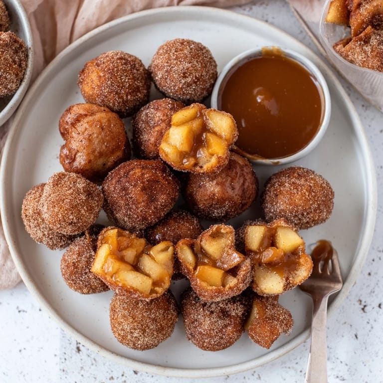Pin It A playful twist on classic churros, these bite-sized treats are filled with tender caramelized apples and coated in cinnamon sugar for a delightful dessert or party snack.