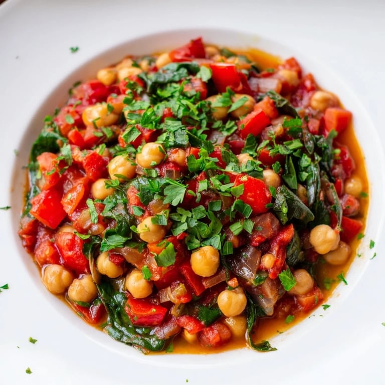 Cumin, smoked paprika, and coriander create a warm, aromatic base that complements the earthiness of chickpeas and freshness of spinach.