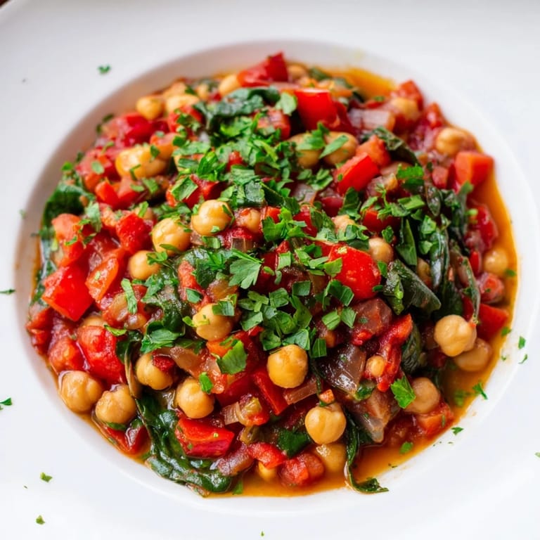 Pin It A hearty, one-pan dish featuring protein-rich chickpeas and fresh spinach, simmered with aromatic spices and tomatoes for a quick, nourishing, and affordable meal.