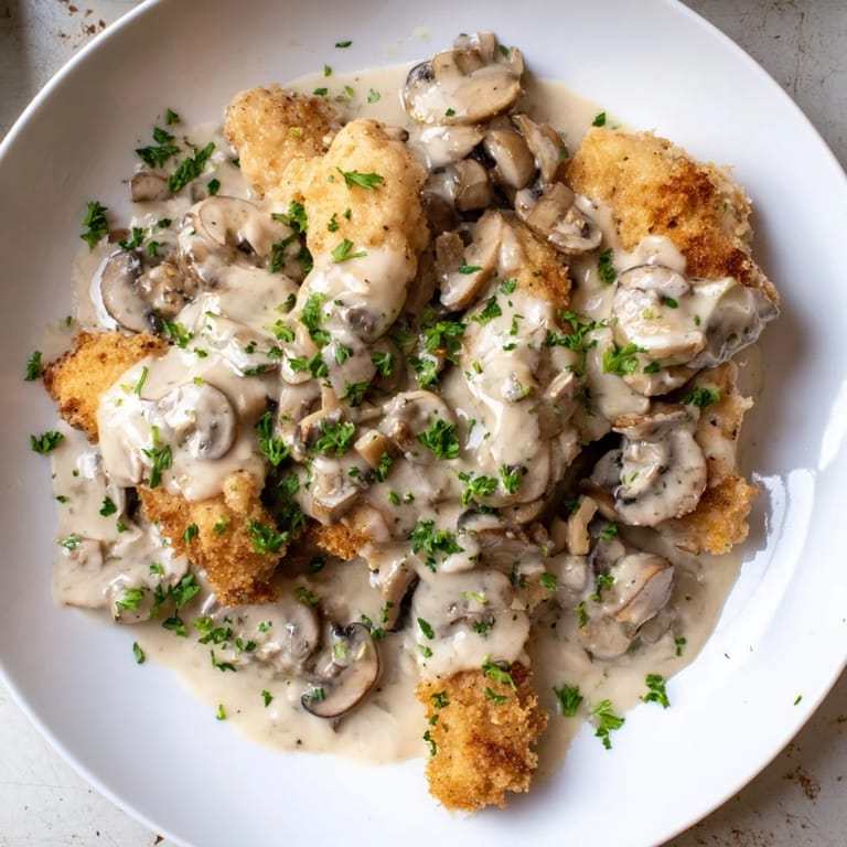 Pin It A comforting and flavorful dish featuring tender chicken in a rich, creamy mushroom sauce, perfect over noodles or rice.