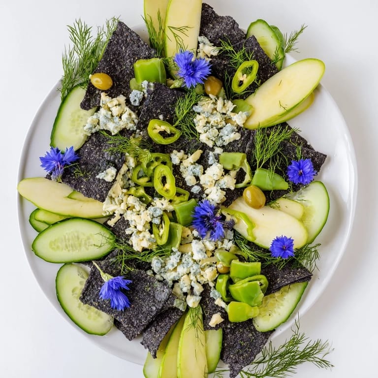Creating a beautiful platter is less about technique and more about feeling the balance of a space. I've learned that the most successful platters have a clear focal point—in this case, your wave—with supporting elements that guide the eye. Think about how the colors interact. The deep blue of the cheese anchors and makes the greens pop. The purple flowers, if you use them, create visual surprise. Movement matters too. Notice how the chips curve? Everything else follows that lead, creating a visual rhythm that feels natural instead of forced. The ingredients don't need to be arranged in neat lines. In fact, the best platters feel like they happened organically, like nature arranged them rather than a careful hand.