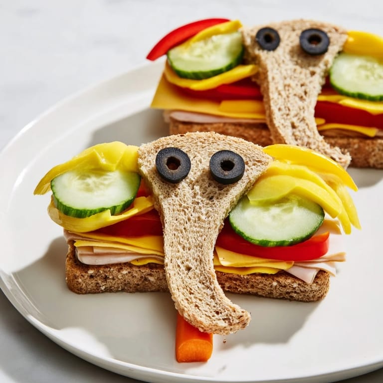 Pin It A whimsical and hearty platter featuring playful, elephant-shaped sandwiches, perfect for childrens parties or circus-themed gatherings.