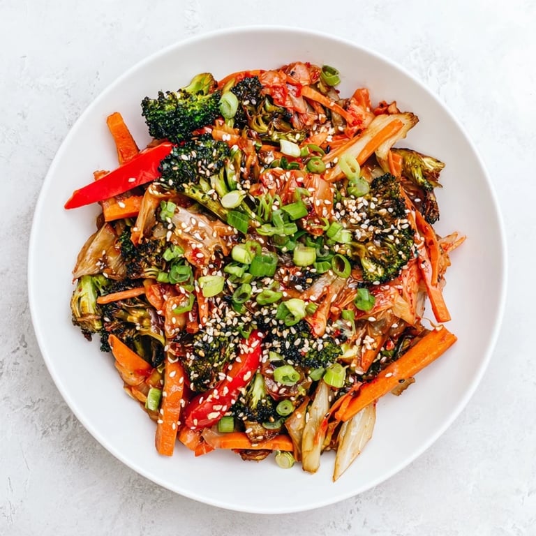 Pin It Last February, when my radiator hissed more than it heated, I craved something that felt like sunshine in a bowl. This stir-fry became my go-to, mixing winter's sturdy vegetables with kimchi's bright tang. One bite brought that perfect balance of cozy warmth and zippy freshness I needed on gray days.