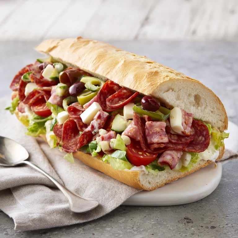 Pin It A vibrant, deli-style sandwich featuring a medley of Italian-inspired ingredients chopped and tossed together for the ultimate flavor-packed bite—perfect for lunch or a crowd-pleasing party platter.