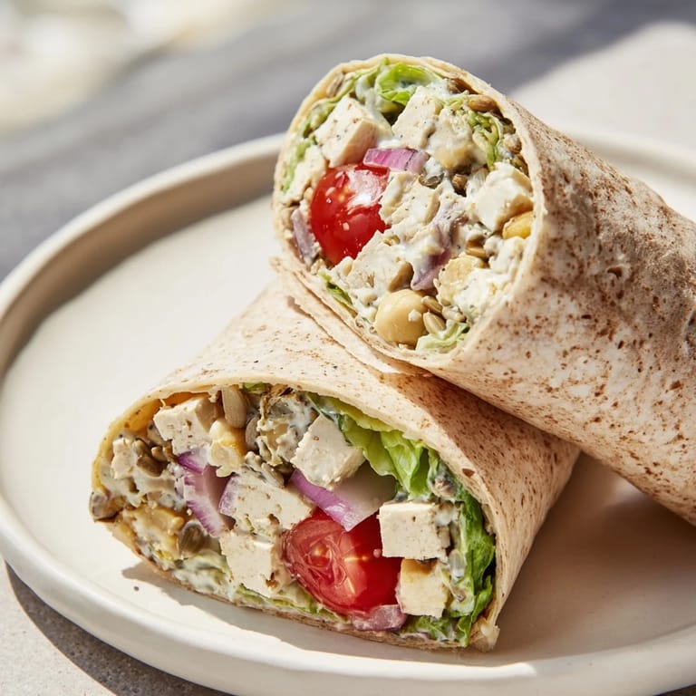 If you're navigating dairy restrictions or cooking for vegan friends, this wrap welcomes the substitution gracefully. Use a coconut or cashew-based yogurt in place of Greek yogurt—it'll be slightly thinner, so whisk a touch more lemon juice in to get the consistency right—and swap the Parmesan for a good vegan version or just omit it entirely. The tofu is already vegan, and the rest follows naturally, making this genuinely inclusive without feeling like anyone's eating a compromise meal.