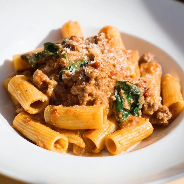 This is rich enough that it doesn't need much, but I usually put out a simple green salad with lemon vinaigrette or some crusty bread for soaking up the sauce. If I'm feeling fancy, I'll open a bottle of Chianti or another light Italian red, the acidity cuts through the cream and sausage perfectly. Sometimes I just serve it with sparkling water and call it a night.