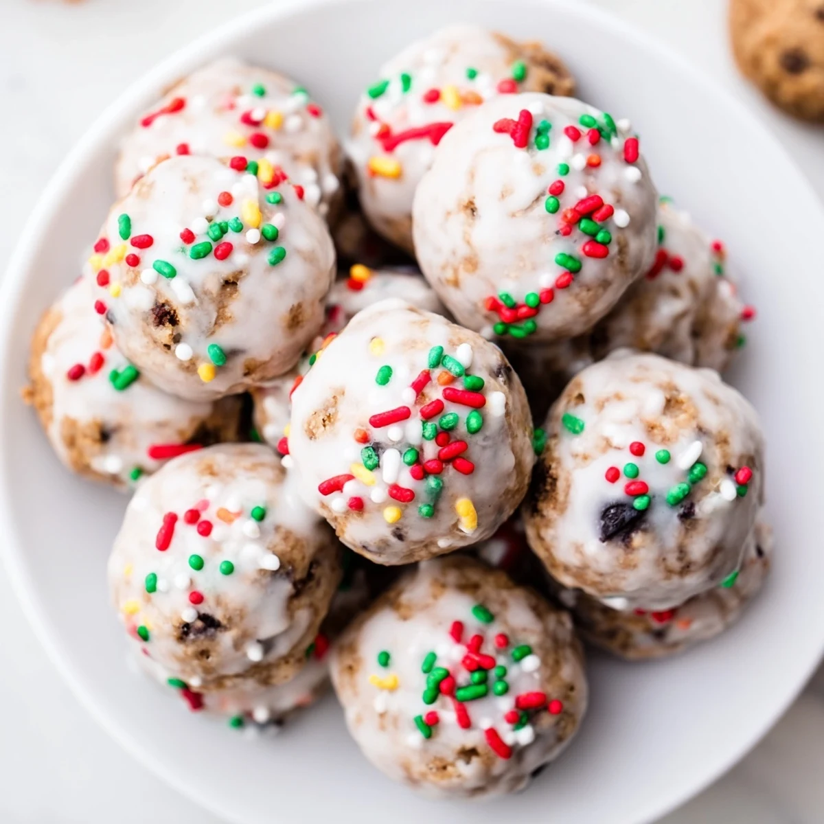 Protein-Packed Italian Cookie Balls Soft, protein-enriched Italian cookie balls with a light glaze and festive sprinkles.
