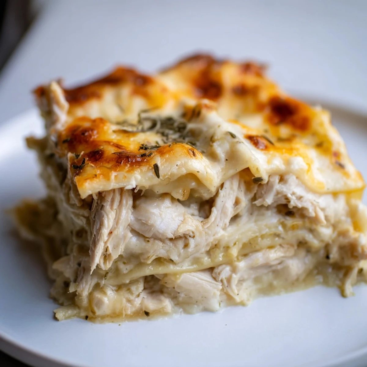 Ingredients Chicken and Seasonings: 2 cups (300 g) cooked chicken breast, shredded, 2 tablespoons fresh rosemary, finely chopped, 2 cloves garlic, minced, 1 tablespoon olive oil, 1 teaspoon salt, ½ teaspoon black pepperSauce: 3 cups (700 ml) whole milk, 3 tablespoons unsalted butter, 3 tablespoons all-purpose flour, ¼ teaspoon nutmeg, ½ cup (50 g) grated Parmesan cheesePasta and Assembly: 12 no-boil lasagna noodles, 2 cups (200 g) shredded mozzarella cheese, ½ cup (50 g) grated Parmesan cheese (for topping)Optional: 1 cup (100 g) baby spinach, roughly choppedInstructions Preheat: Preheat oven to 375°F (190°C). Prepare Chicken Mixture: In a skillet, heat olive oil over medium heat. Add garlic and rosemary, sauté 1 minute until fragrant. Stir in shredded chicken, salt, and pepper. Toss to combine, remove from heat. Make Béchamel Sauce: For the béchamel sauce, melt butter in a saucepan over medium heat. Whisk in flour and cook for 1 minute. Gradually whisk in milk, stirring constantly until thickened, 5–7 minutes. Season with nutmeg and stir in Parmesan cheese. Remove from heat. Add Spinach (Optional): If using, stir chopped spinach into the chicken mixture. Layer Lasagna: Spread a thin layer of béchamel sauce in a 9x13-inch (23x33 cm) baking dish. Layer 3 lasagna noodles over the sauce. Assemble Layers: Top with ⅓ of the chicken mixture, ¼ of béchamel, and ¼ of mozzarella. Repeat layers two more times. Finish with final noodles, remaining béchamel, mozzarella, and Parmesan. Bake: Cover with foil and bake for 30 minutes. Remove foil and bake an additional 10–15 minutes, until golden and bubbling. Rest and Serve: Let rest 10 minutes before slicing and serving. Pin It | dudesnack.com Important Info Contains milk, wheat (gluten), and possible egg (if using egg-based noodles). Always check ingredient labels for allergen traces. Lasagna night is one of my family's favorites. The irresistible aroma of rosemary and cheese filling the kitchen always brings everyone to the table with smiles.