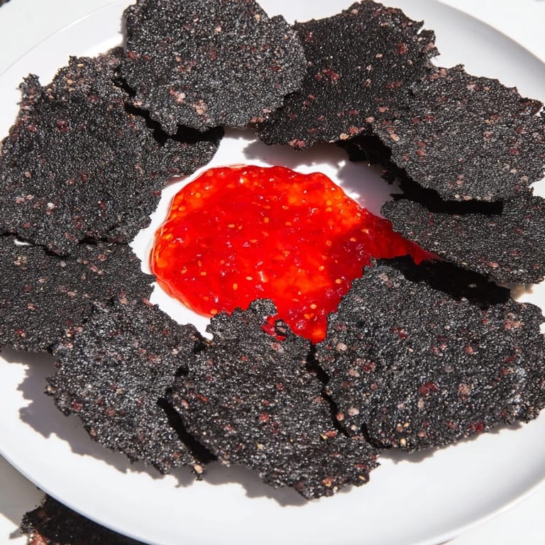 Pin It I discovered The Volcanic Flow while experimenting with black sesame crackers one Saturday afternoon, but a moment of inspiration struck when I knocked over a jar of red pepper jelly near my cooling rack. Watching that crimson spread pool on the countertop, I realized it looked just like lava flowing down a volcano—and suddenly the whole dish assembled itself in my mind. The theatrical presentation became irresistible, especially knowing it would make people smile at parties. What started as happy accident became my favorite conversation starter.