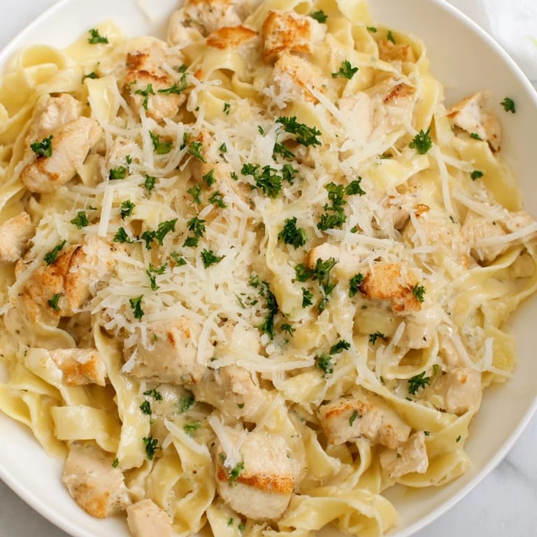 This comforting dish brings tender chicken and fettuccine together in a luxurious Alfredo sauce. The sauce is crafted by sautéing garlic in butter, then whisking in a creamy blend of milk, cream, and Parmesan until smooth and thickened. Tossed with cooked pasta and chicken, the mixture is transferred to a baking dish and topped with mozzarella and Parmesan cheese before baking until bubbly and golden. A sprinkle of fresh parsley adds color and freshness.