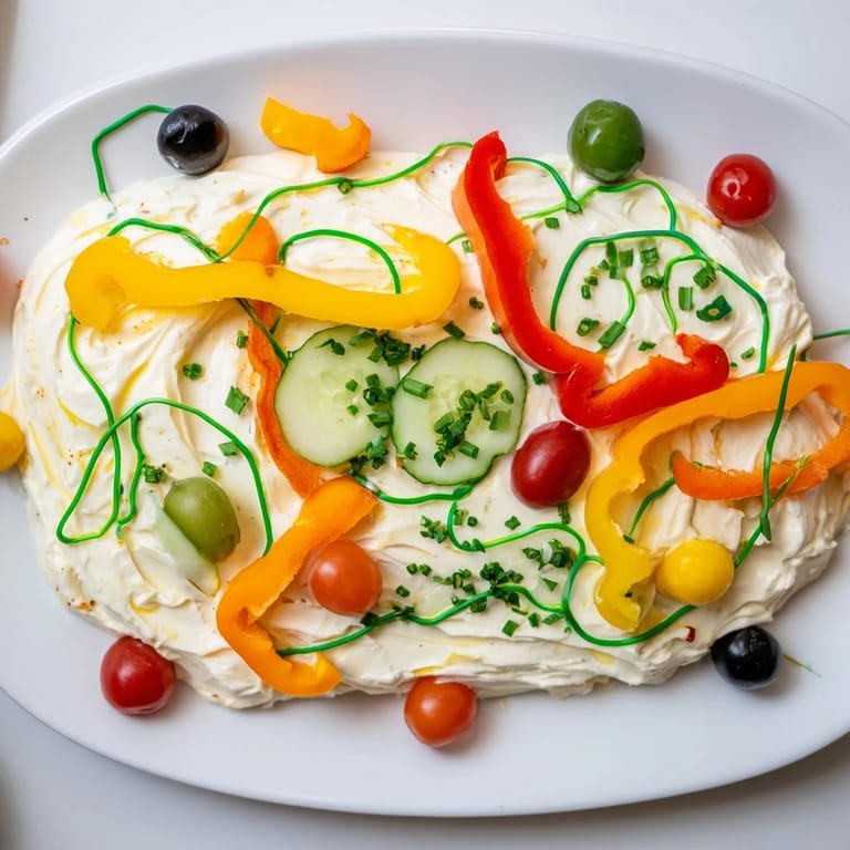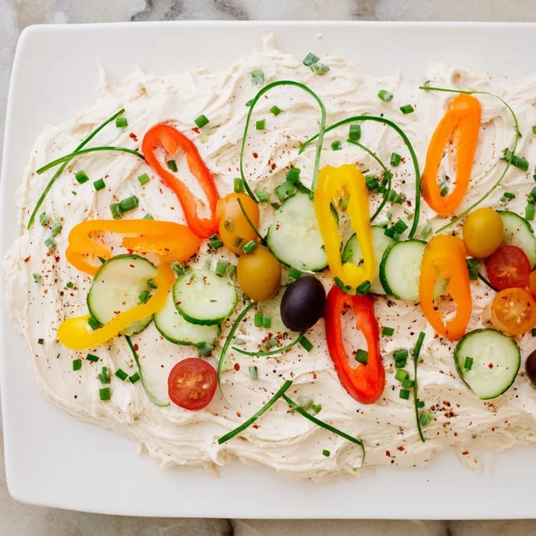 This festive spread combines creamy cream cheese, sharp cheddar, and a blend of seasonings to create a smooth base. Arranged on a platter to resemble a string of Christmas lights, it’s decorated with colorful mini bell peppers, grape tomatoes, cucumber slices, olives, and fresh herbs. Ready in just 25 minutes, this bright and flavorful spread adds a cheerful centerpiece for holiday entertaining. It pairs well with gluten-free crackers and fresh vegetable dippers, offering a delightful vegetarian option with a beautiful presentation.