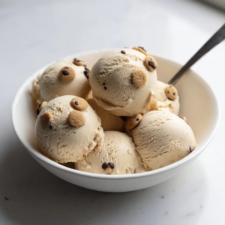 Pin It A creamy, protein-packed ice cream featuring whipped cottage cheese and bursts of edible chocolate chip cookie dough, perfect for a guilt-free frozen treat.