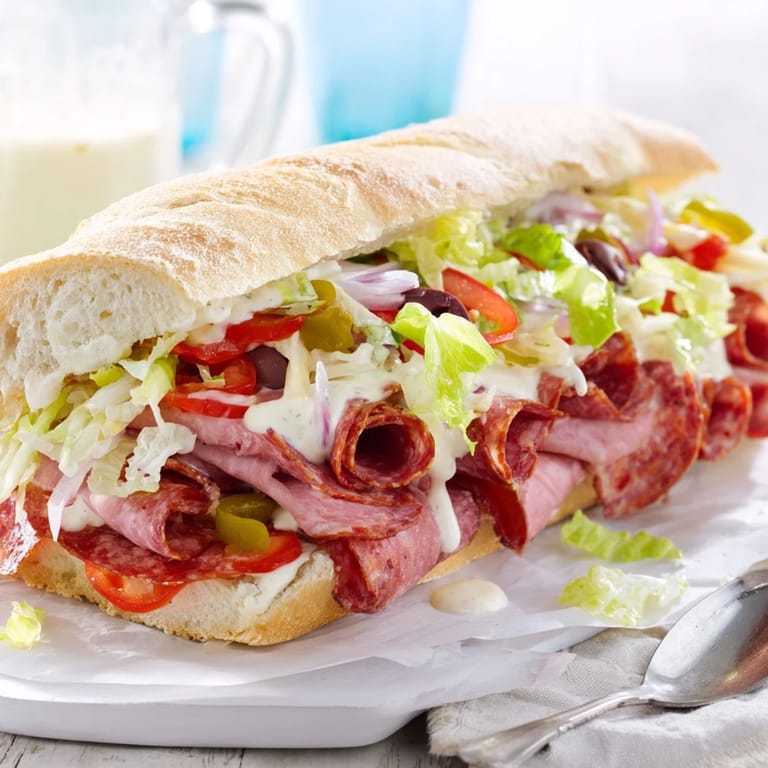 Pin It A vibrant, deli-style sandwich featuring a medley of Italian-inspired ingredients chopped and tossed together for the ultimate flavor-packed bite—perfect for lunch or a crowd-pleasing party platter.