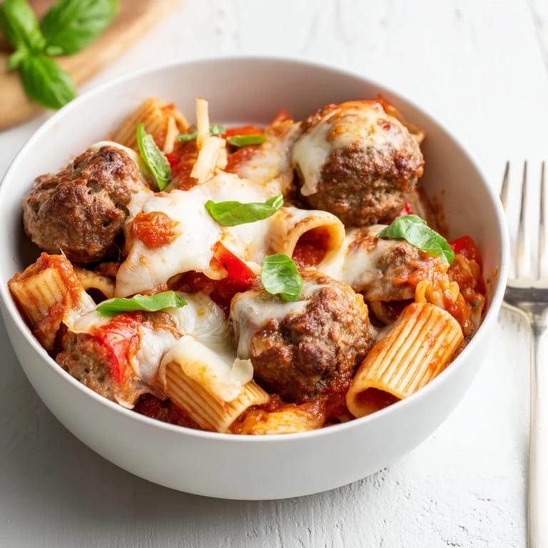 Pin It A hearty one-pan Italian dish featuring tender meatballs simmered in a rich tomato sauce with pasta and melted cheese. It's perfect for a comforting family dinner and brings rustic Italian flavors right to your table.