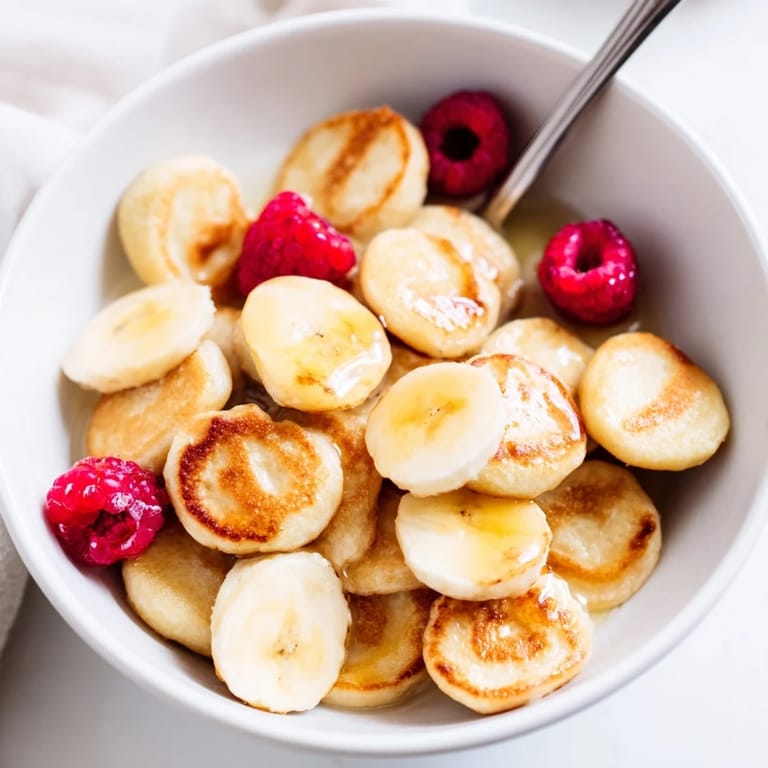 Mini pancake cereal delivers a playful twist to breakfast: tiny, golden pancakes crisp on the outside, soft inside, served by the spoonful in a bowl. Prepare the batter, pipe onto a sizzling pan, and flip until golden. Serve warm with a splash of milk for a cereal-style treat, or drizzle with syrup and sprinkle fresh berries or banana. Try plant-based alternatives for a dairy-free variation and boost flavor with chocolate chips or cinnamon. Best eaten fresh and sizzling, these mini pancakes are a quick, joyful meal loved by all ages.